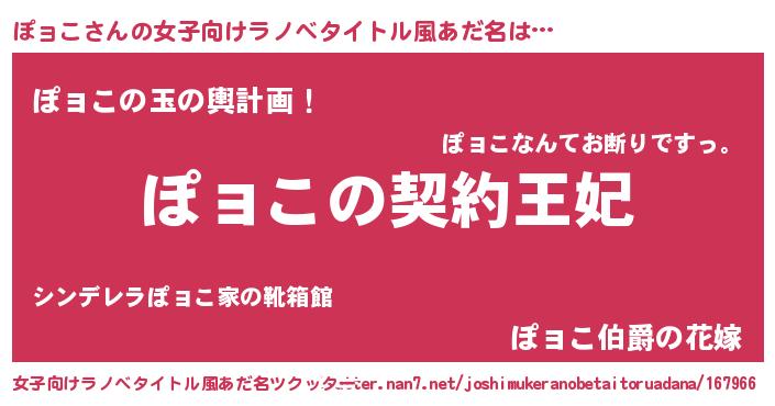 | 男性向けラノベタイトル風あだ名 | 『誰もが恐れるあのぽョこが、ぼくの専属メイドになるようです。』 |