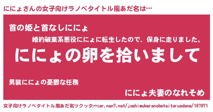 | 意味不明あだ名 | 『とにかく怪しいににょ』『自称ににょ』 |
