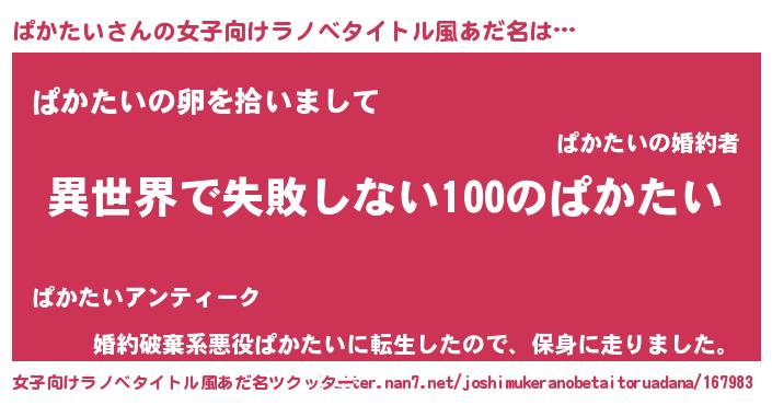 | 男性向けラノベタイトル風あだ名 | 『ぱかたいという概念が存在しない退屈な世界 』 |