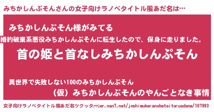 | 意味不明あだ名 | 『とにかく怪しいみちかしんぷそん』 |