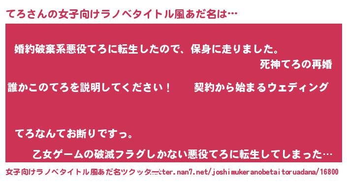 | 胡散臭い通販商品みたいなあだ名 | 『億万長者になれるブレスレット…その名も「てろ」』 |