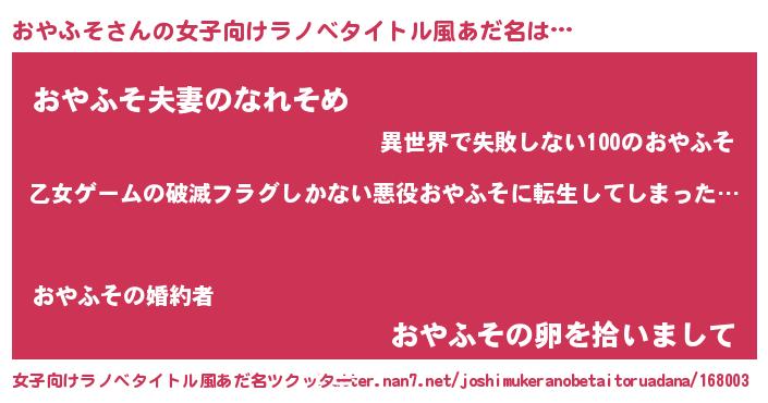 | 意味不明あだ名 | 『住所不定無職おやふそ(93歳)』 |