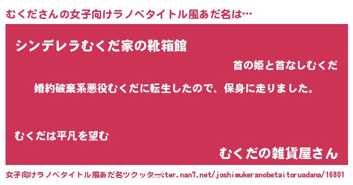 | 男性向けラノベタイトル風あだ名 | 『ムクダスレイヤー』『緋弾のムクダ』 |