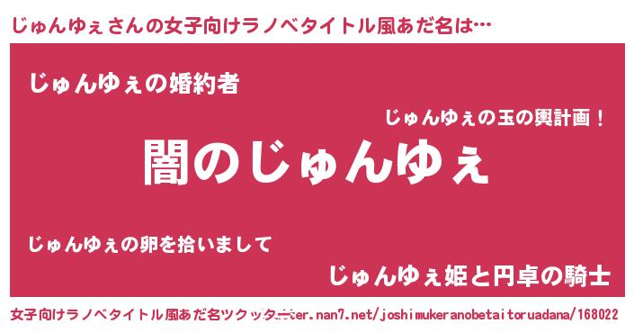 | 男性向けラノベタイトル風あだ名 | 『Re:じゅんゆぇから始める異世界生活』 |