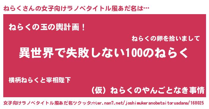 | 胡散臭い通販商品みたいなあだ名 | 『絶対に幸福をもたらす健康食品…その名も「ねらく」』 |
