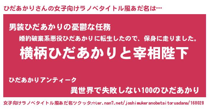 | ヒーロー風カッコイイあだ名 | 『ネオヒダアカリ』『究極戦士ヒダアカリ』 |