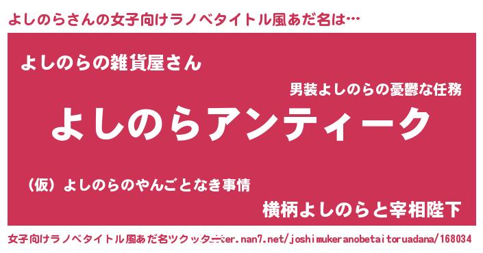 | 胡散臭い通販商品みたいなあだ名 | 『テレビで話題の高麗人参…その名も「よしのら」』 |