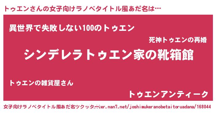 | 胡散臭い通販商品みたいなあだ名 | 『絶対に幸福をもたらす水素水…その名も「トゥエン」』 |