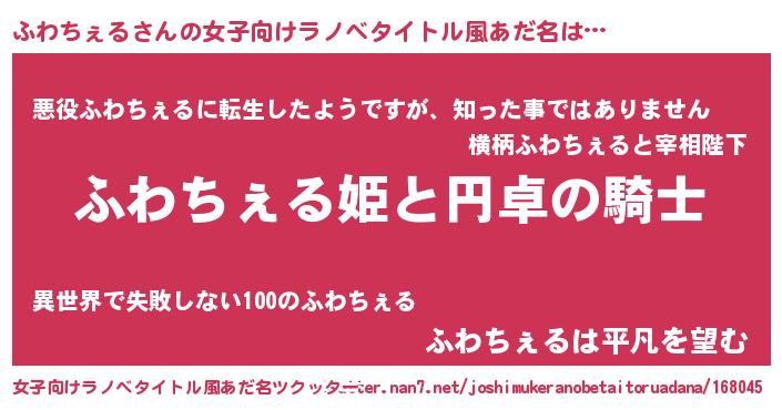 | 男性向けラノベタイトル風あだ名 | 『ふわちぇるの憂鬱』 |