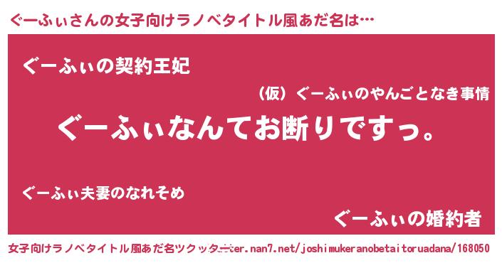 | ヘコむあだ名 | 『ぐーふぃ(震え声)』『なまこ酢』 |