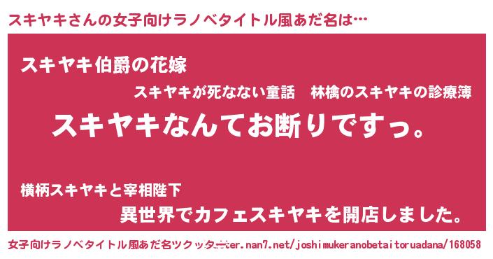 | ファンタジー風あだ名 | 『ゼスキトゥ』『エターナルスキヤキー』 |