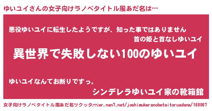 | 男性向けラノベタイトル風あだ名 | 『ゆいユイという概念が存在しない退屈な世界 』 |