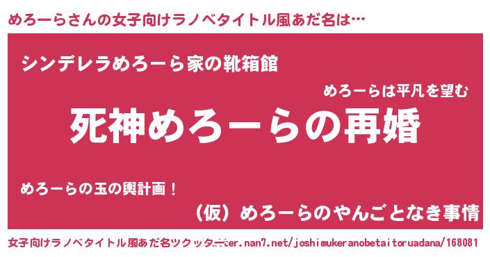 | 欧米人風あだ名 | 『ダニエルめろーら』『マイケルめろーら』 |