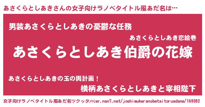 | 意味不明あだ名 | 『あさくらとしあきフォーエバー』 |