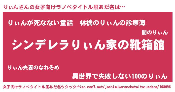 | 男性向けラノベタイトル風あだ名 | 『緋弾のリィン』『魔弾の王とりぃん』 |
