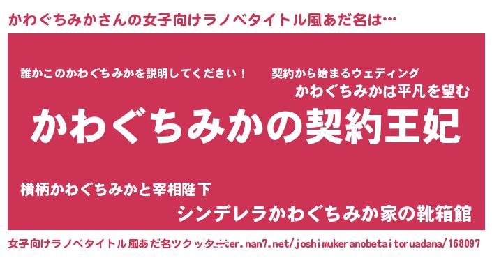 | 男性向けラノベタイトル風あだ名 | 『誰もが恐れるあのかわぐちみかが、ぼくの専属メイドになるようです。』 |