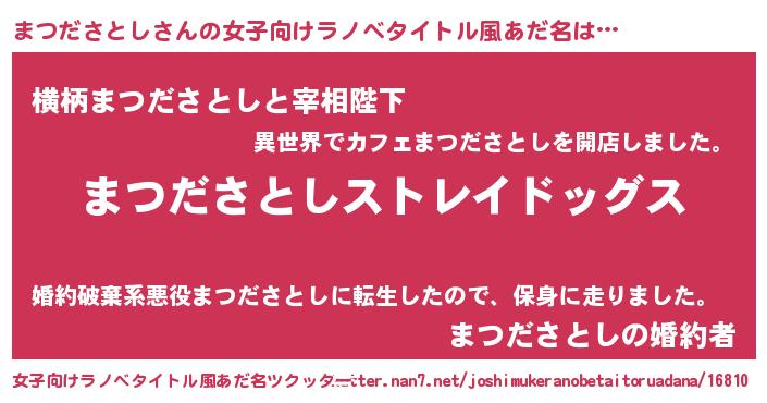 | 胡散臭い通販商品みたいなあだ名 | 『芸能人もオススメする高麗人参…その名も「まつださとし」』 |