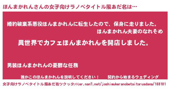 | 男性向けラノベタイトル風あだ名 | 『誰もが恐れるあのほんまかれんが、ぼくの専属メイドになるようです。』 |