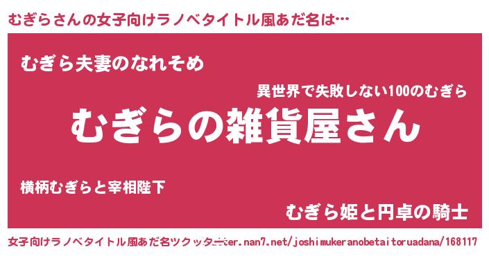 | 意味不明あだ名 | 『むぎらフォーエバー』『ペロリンむぎら』 |
