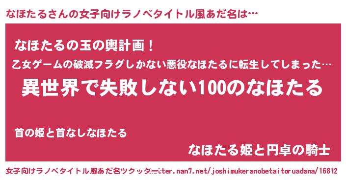 | ヒーロー風カッコイイあだ名 | 『ネオナホタル』『スーパーナホタル』 |