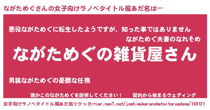 | 男性向けラノベタイトル風あだ名 | 『やはりながためぐの青春ラブコメはまちがっている 』 |