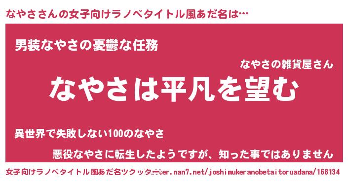 | 胡散臭い通販商品みたいなあだ名 | 『信頼と実績のネックレス…その名も「なやさ」』 |