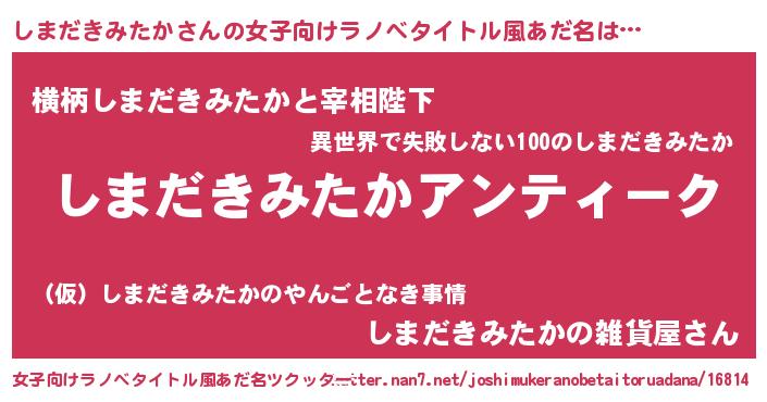 | 男性向けラノベタイトル風あだ名 | 『魔法科高校のしまだきみたか』 |