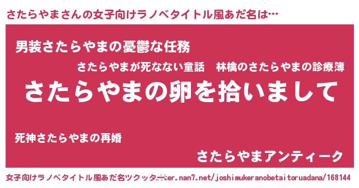 | 男性向けラノベタイトル風あだ名 | 『ダンジョンにさたらやまを求めるのは間違っているだろうか』 |