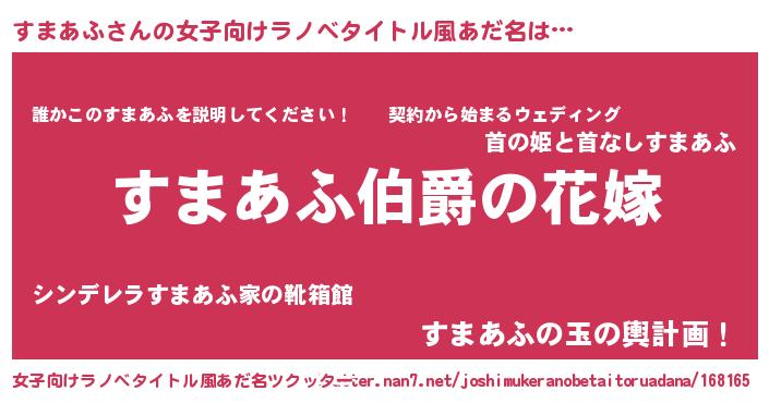 | 男性向けラノベタイトル風あだ名 | 『やはりすまあふの青春ラブコメはまちがっている 』 |