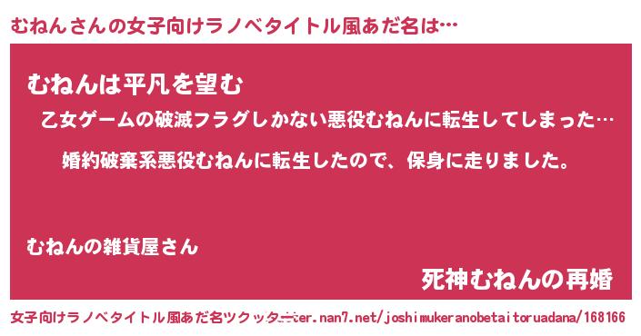 | ファンタジー風あだ名 | 『ユリムネヴァット』『ファントムムネス』 |
