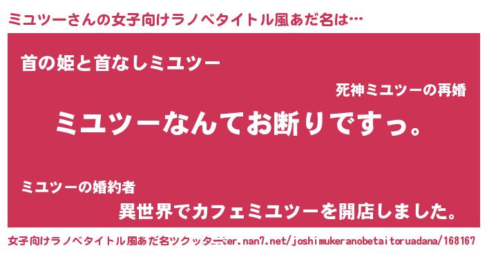 | 意味不明あだ名 | 『自称ミユツー』『永久保存ミユツー』 |