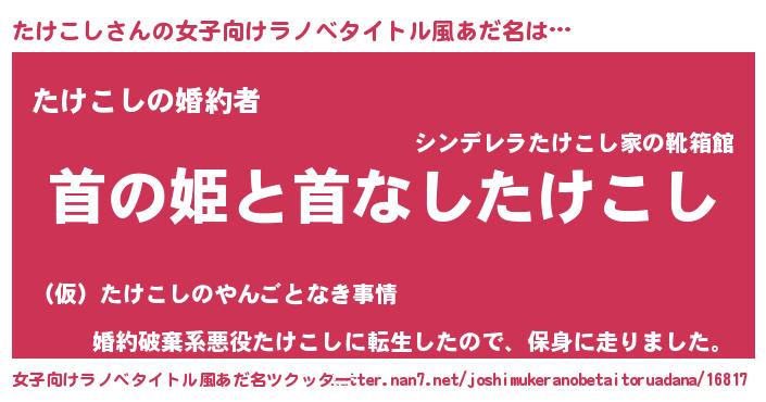 | 男性向けラノベタイトル風あだ名 | 『はたらくたけこしさま!』 |