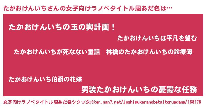 | 意味不明あだ名 | 『住所不定無職たかおけんいち(9歳)』 |