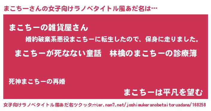 | 男性向けラノベタイトル風あだ名 | 『魔弾の王とまこちー』 |