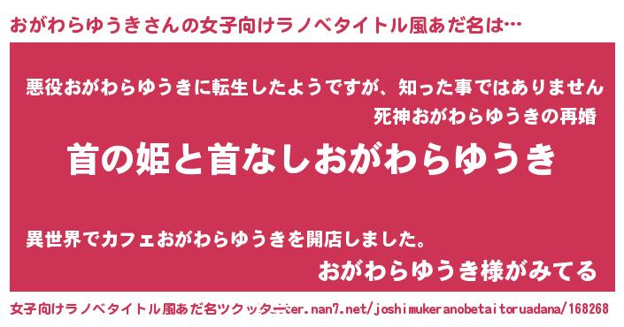 | 男性向けラノベタイトル風あだ名 | 『はたらくおがわらゆうきさま!』 |