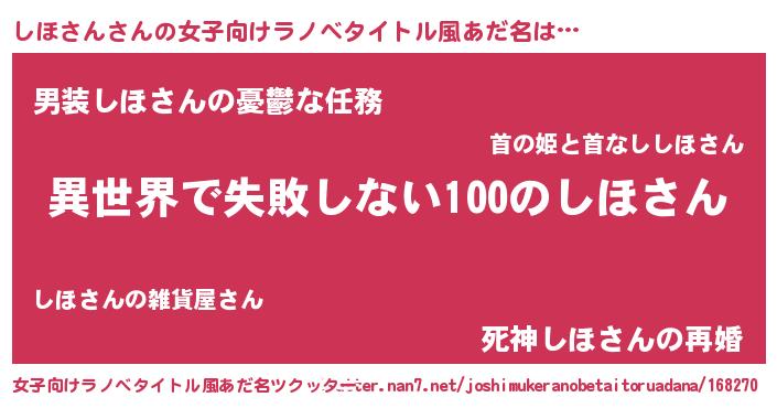 | 男性向けラノベタイトル風あだ名 | 『しほさんという概念が存在しない退屈な世界 』 |