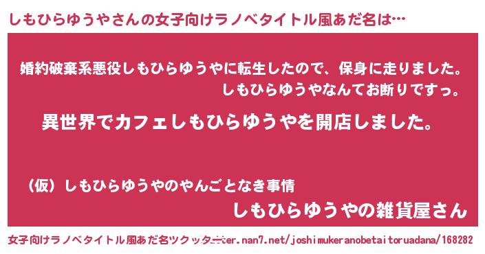 | 肩書あだ名 | 『しもひらゆうや先生』 |