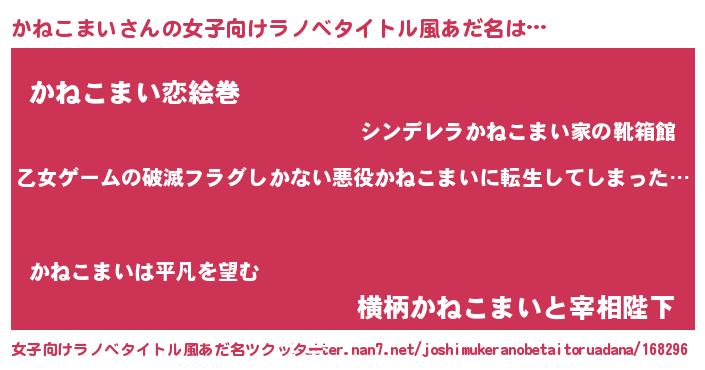 | 男性向けラノベタイトル風あだ名 | 『魔弾の王とかねこまい』 |
