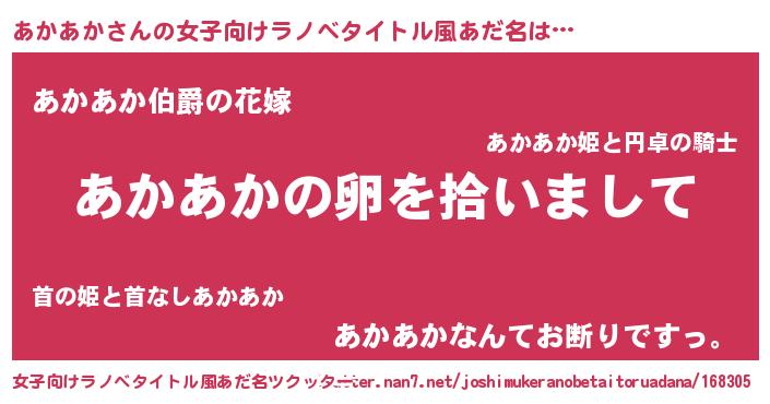 | 2回繰り返すあだ名 | 『にゅぷにゅぷ』『ああかか』 |