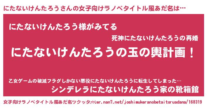 | 男性向けラノベタイトル風あだ名 | 『転生したらにたないけんたろうだった件』 |
