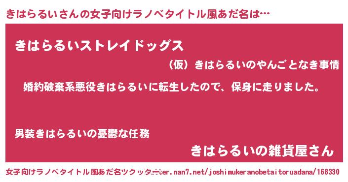 | 料理風あだ名 | 『きはらるいごはん』 |