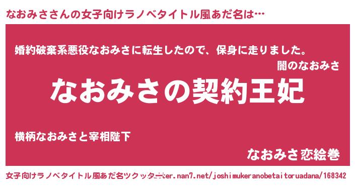 | 男性向けラノベタイトル風あだ名 | 『なおみさという概念が存在しない退屈な世界 』 |
