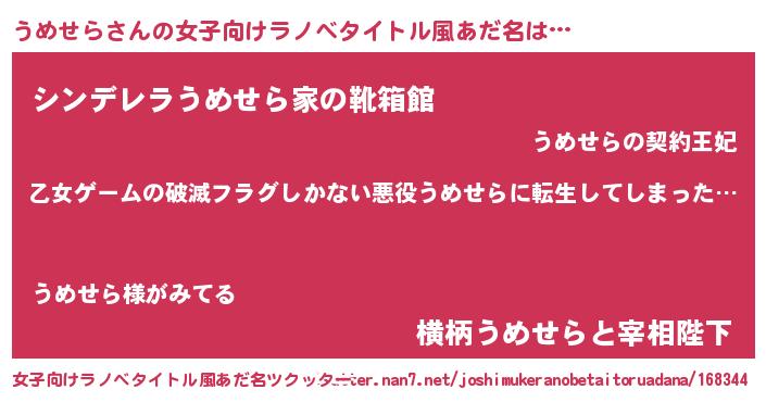 | 男性向けラノベタイトル風あだ名 | 『この素晴らしい世界にうめせらを!』 |