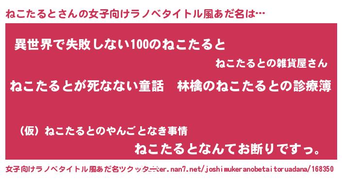 | 欧米人風あだ名 | 『ダレノガレねこたると』 |