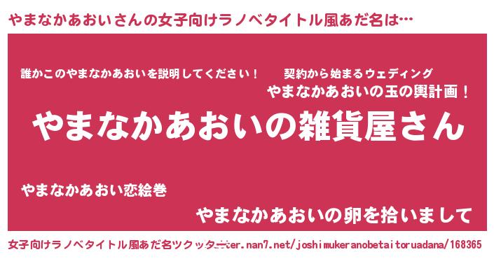 | 男性向けラノベタイトル風あだ名 | 『やはりやまなかあおいの青春ラブコメはまちがっている 』 |