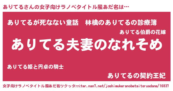 | ヘコむあだ名 | 『ありてる(遠い目)』『酢こんぶ』 |