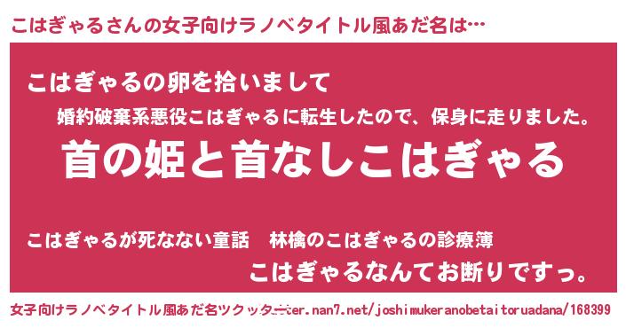 | 意味不明あだ名 | 『とにかく怪しいこはぎゃる』 |