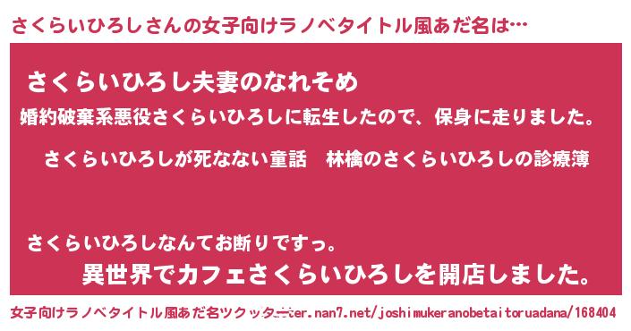 | 男性向けラノベタイトル風あだ名 | 『魔弾の王とさくらいひろし』 |