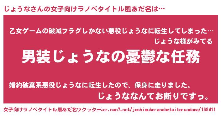 | 意味不明あだ名 | 『住所不定無職じょうな(47歳)』 |