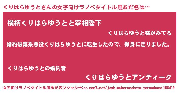 | 男性向けラノベタイトル風あだ名 | 『転生したらくりはらゆうとだった件』 |